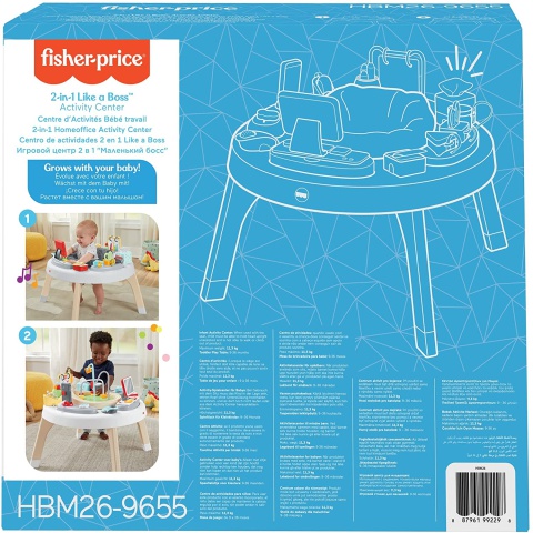 A Fisher-Price új Kisfőnök babafoglalkoztatója rendkívül jópofa és szórakoztató a babák számára. Az egész kis asztal pont úgy fest, mint egy irodai munkaállomás számtalan izgalmas eszközzel és fejlesztő játékkal. Az asztal közepébe beleültethető a baba, de ha kivesszük a széket, akkor egy golyóvezető pálya is beleilleszthető a megmaradt nyílásba. Az asztalon találhatóak formaillesztő eszközök, melyek például csészét és virágot mintáznak. Található rajta grafikonos babalapozgató és babatelefon is. A számítógép, klikkelhető egér és mini nyomtató is mind-mind érdekessé teszik a munkaállomást.