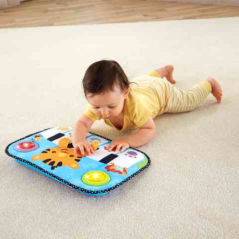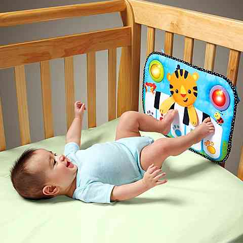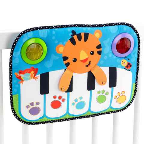 Egyszerűen a kiságyra rögzíthető kiegészítővel lehet még érdekesebb a gyerekek számára a játék, hiszen a puha kiságy zongora a kicsiket hosszú ideig lefoglalja, érdeklődésüket hamar felkelti. Az akár lábbal vagy kézzel is nyomkodható zongora billentyűk más és más hangot adnak ki, valamint fényekkel is szórakoztatják a babákat. A puha zongora akár 20 percnyi vidám dallamot is képes lejátszani.