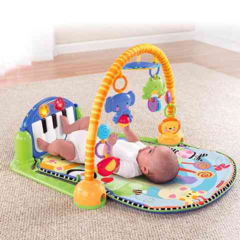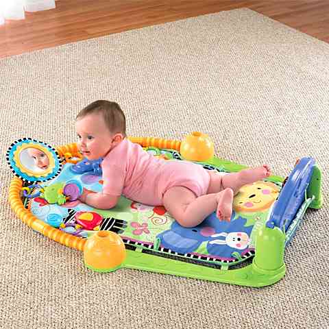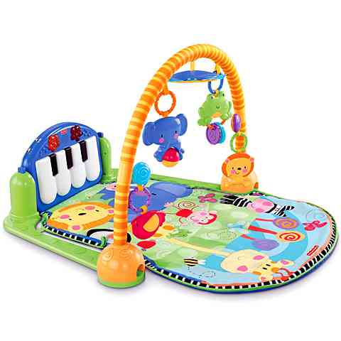 A kicsik a dzsungel világában kalandozhatnak, ahol rengeteg színes állat, új forma és egy kis zene is várja őket. A Fisher-Price játszószőnyeg a színes állatokkal dekorált szőnyegen tartalmazza a le- és felhajtható zongora billentyűket, amit a kicsik a lábukkal vagy a kezükkel is nyomkodhatnak, vidám dallamokat játszva el. A kézügyességük fejlődéséről nem csak ez, hanem a felettük íves rúdon elhelyezkedő színes állatok is gondoskodnak, akik rágókával és egyéb játékokkal felszereltek.