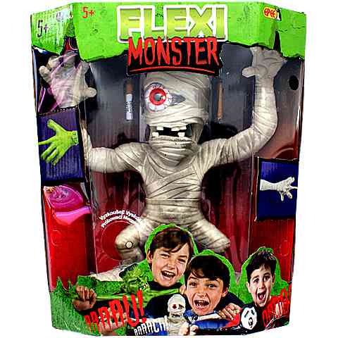 Rémséges kalandokban lehet részed ezzel a Flexi Monsters Múmiával, aminek különlegessége, hogy a lábát megnyomva hangokat ad, valamint hogy a szemét akár ki is lőheted! A nyúlós kezeit akár több centi hosszúra is kinyújthatod, de a felsőtestének egésze gumiból készült. A rémesen jó fej Flexi Monsters Múmia mellett ismerd meg a Frankenstein figurát is, akinek agya kivehető.