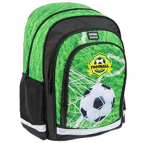 Szuper iskolatáskával kezdhetik meg a tanévet a gyerekek, hiszen ez a hátizsák nem csak rendkívül mutatós, hanem igazán praktikus is. A focilabdás iskolatáska két nagy méretű rekesszel rendelkezik, valamint első zsebét is megtölthetik iskolaszerekkel a gyerekek. A cipzárral könnyedén nyitható zsebek mellett oldalsó hálós tárolók is a rendelkezésükre állnak, melyben a kulacsot szállíthatják. A strapabíró iskolatáska párnázott hátkiképzése a kényelemről, a fényvisszaverő elemek pedig a biztonságos közlekedésről gondoskodnak.