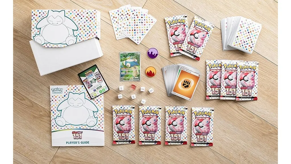 A Scarlet & Violet — 151 Elite Trainer Box kinyitása kissé megterhelő lehet, csak a benne rejlő sok kincs miatt. Egyszerűen fogalmazva, a doboz tartalmaz 11 Pokémon TCG: Scarlet & Violet — 151 bővítőcsomagot, 65 kártyavédő fóliát, 45 Pokémon TCG Energy kártyát, hat kockát a sebzések számlálására, két műanyag állapotjelölőt, egy fóliázott promóciós kártyát Snorlax-szal a Pokémon Center logóval, egy további fóliázott promóciós kártyát Snorlax-szal, egy versenyeken is használható pénzfeldobó kockát, egy játékosoknak szóló útmutatót a Scarlet & Violet — 151 kiegészítőhöz, egy kódkártyát a Pokémon Trading Card Game Live-hoz, valamint egy dobozt, amelyben mindezt tárolhatjuk.