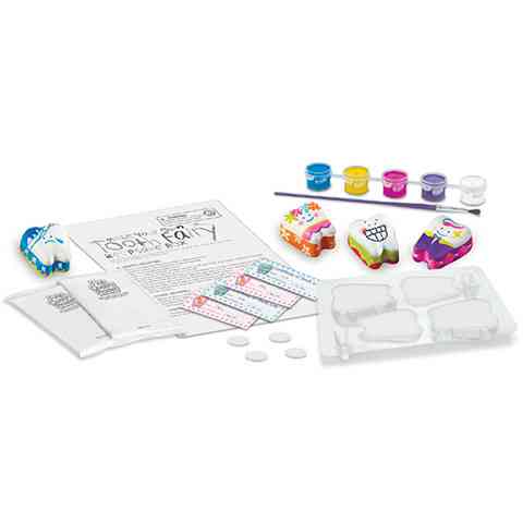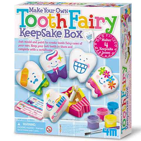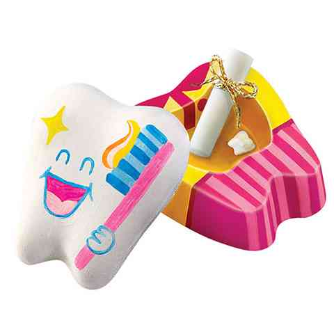 Biztosan te is ismered a fogtündér történetét, aki a kihullott tejfogakért cserébe valamilyen ajándékot szokott hagyni! Ebben a csomagban gipszöntő formákat, modellgipszet, ecsetet és festéket találsz, amikből saját magad készíthetsz egy kis tartót a kihullott tejfogaid számára. Keverj össze egy kis gipszet és vizet, majd az így keletkezett masszával öntsd ki a formákat. A készletben található ecsettel és festékekkel saját elképzelésed szerint díszítheted a dobozokat. A csomag tartalmaz egy igazolást is, ami megerősíti, hogy elvesztetted egy tejfogadat. A csomag tartalma négy kis doboz elkészítésére elegendő.