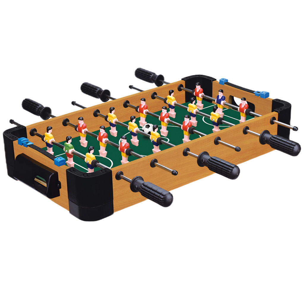 Az asztalon mindkét oldalon 3-3 forgatható rudat találunk, amelyeken csapatonként 9-9 játékos figyel. A cél, hogy ügyesen irányítsuk ezeket a bábukat, és minél több gólt rúgjunk az ellenfél kapujába. Ez egy szuper családi játék, amely garantáltan szórakoztató perceket nyújt mindenkinek.