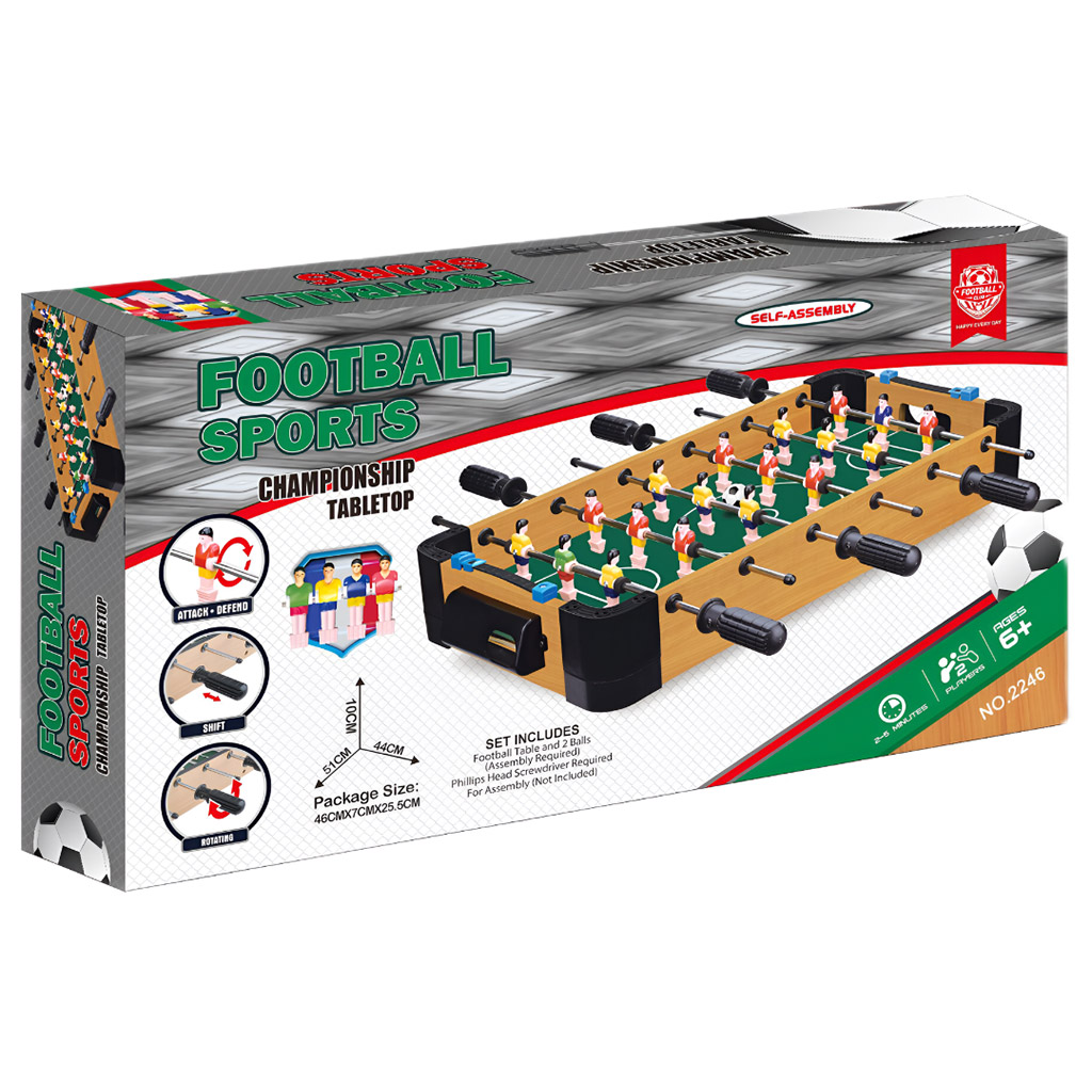 Az asztali csocsó játék egy remek választás a családi szórakozáshoz és az izgalmas mérkőzésekhez otthon, anélkül, hogy nagy helyet foglalna el. A szettben található egy 51 cm x 10 cm x 44 cm-es csocsóasztal, amely a valódihoz hasonló élményt nyújt, méretét leszámítva.