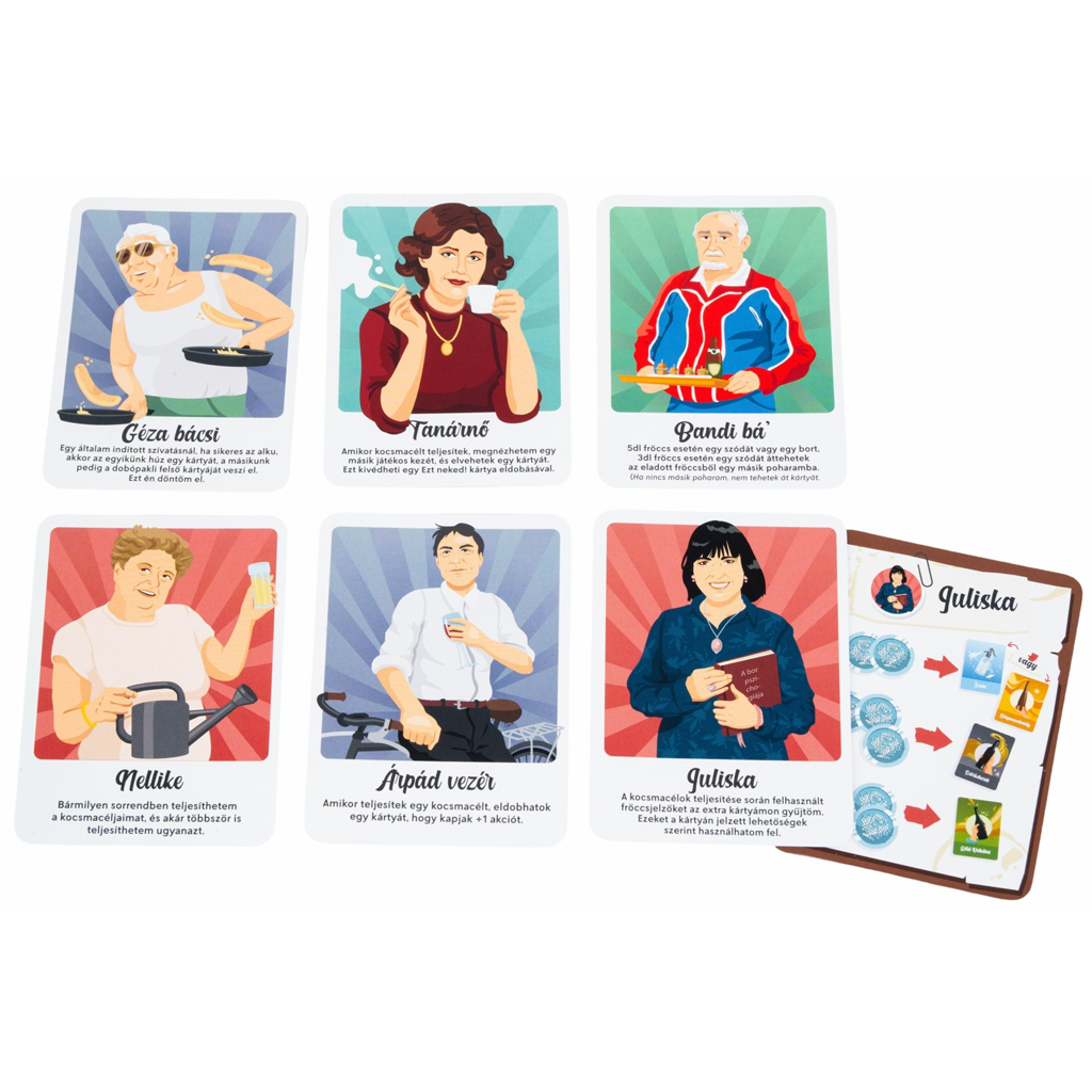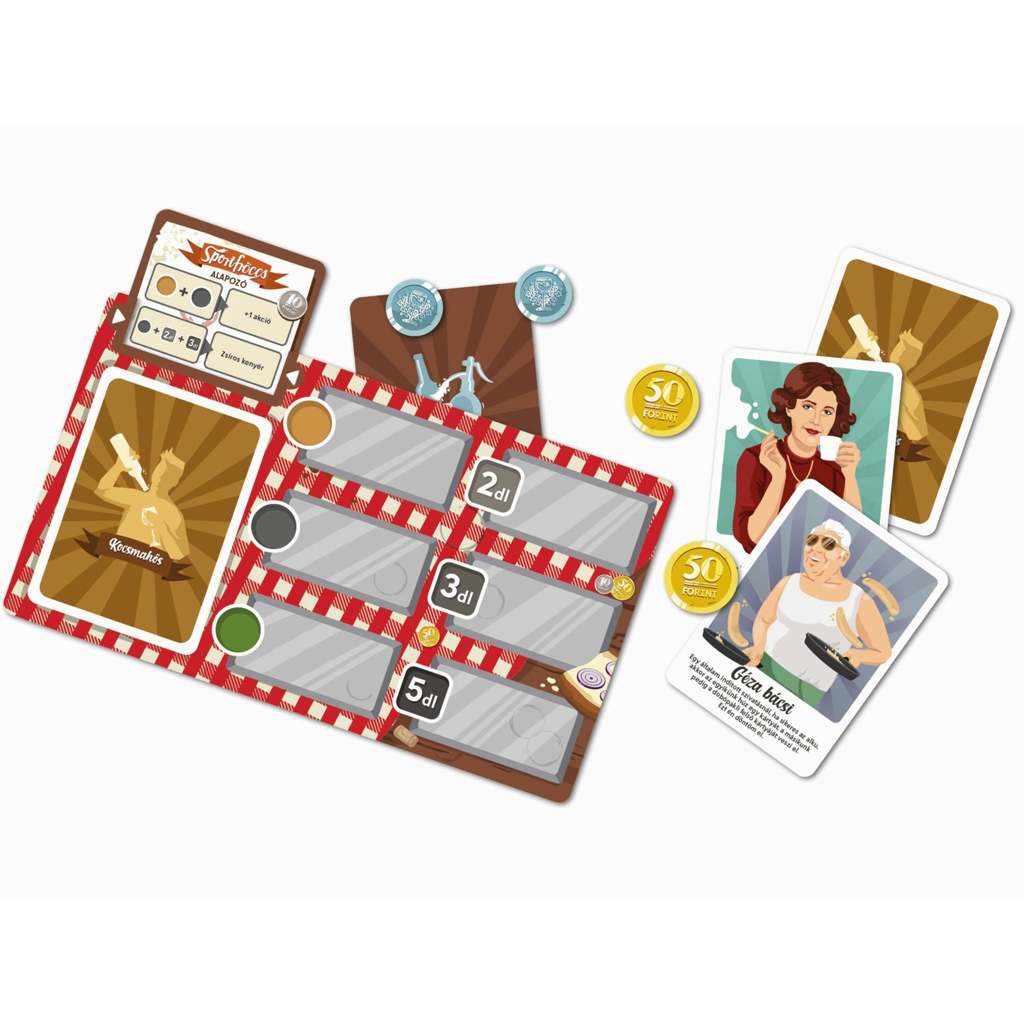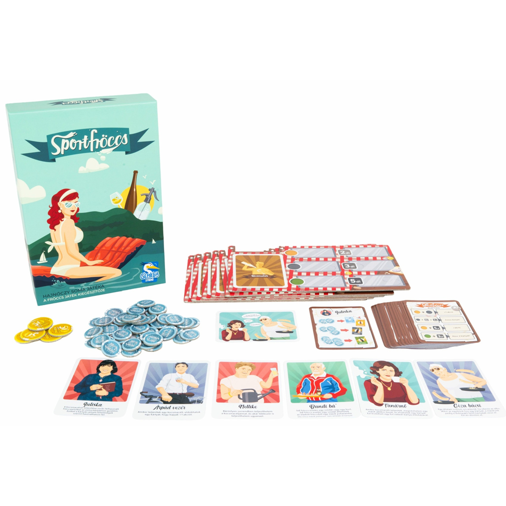 A Fröccs: Sportfröccs társasjáték kiegészítő új szintre emeli az alapjáték élményét, és még változatosabb, izgalmasabb játékmenetet kínál nektek. Ha már szeretitek a Fröccs hangulatát, ezzel a kiegészítővel tovább bővíthetitek a lehetőségeket, és még több taktikai döntést hozhattok meg játék közben. Az új karakterek, különleges képességek és friss kihívások minden partit egyedivé tesznek, így garantáltan nem fogtok ráunni.