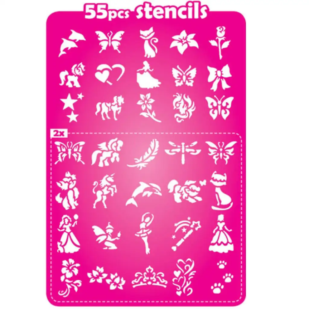 A TyToo alaposan megpakolta ezt a dobozt, hiszen a hat különféle színű csillámpor mellett több mint ötven divatos sablont is találsz, ráadásul vannak minták amelyek duplázva fordulnak elő, így a barátnőddel azonos díszítést is készíthettek egymásnak. Az elkészült csillámtetoválásokat pedig az öntapadó strasszkövekkel egészíthetitek ki. A készlet tartalmazza a szükséges ragasztót, ami természetesen menetes minden káros és allergén anyagtól és akár tizennyolc napig tartó tetoválást elkészítését is lehetővé teszi. A dobozban hat különböző színű kozmetikai csillámpor is helyet kapott, a minták színvilágához igazodva.