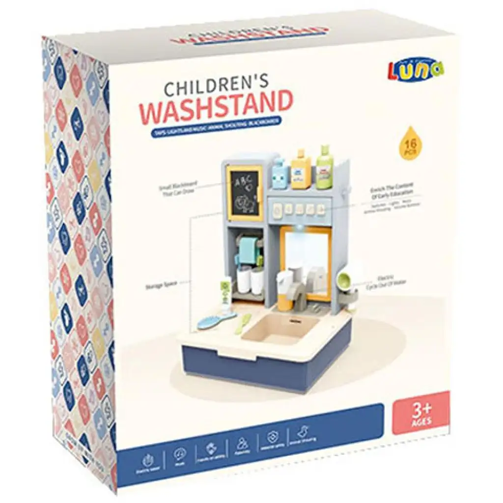 Fürdőszoba mosdó kék színben fénnyel és hanggal 16 db-os szettFürdőszoba mosdó kék színben fénnyel és hanggal 16 db-os szett