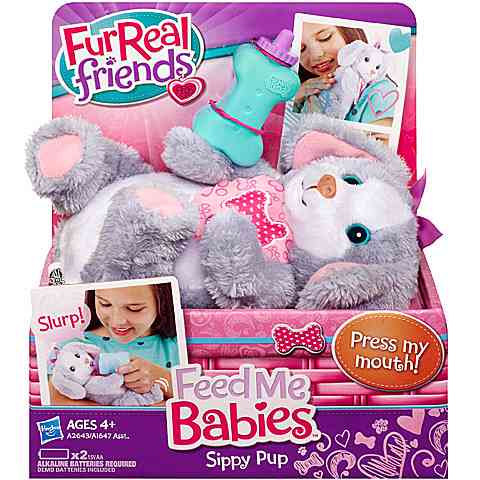 Hatalmas lógó fülei mögött könnyedén elbújik ez a kutyus, akinek megetetése most a Te feladatod lesz. A stílusosan csont alakú cumisüveget a kutya szájához kell nyomnod, a FurReal Friends állat pedig egyből hangokkal és lábainak mozgatásával jelzi, már nagyon várta az etetés időt. Kezdődjék a játék!