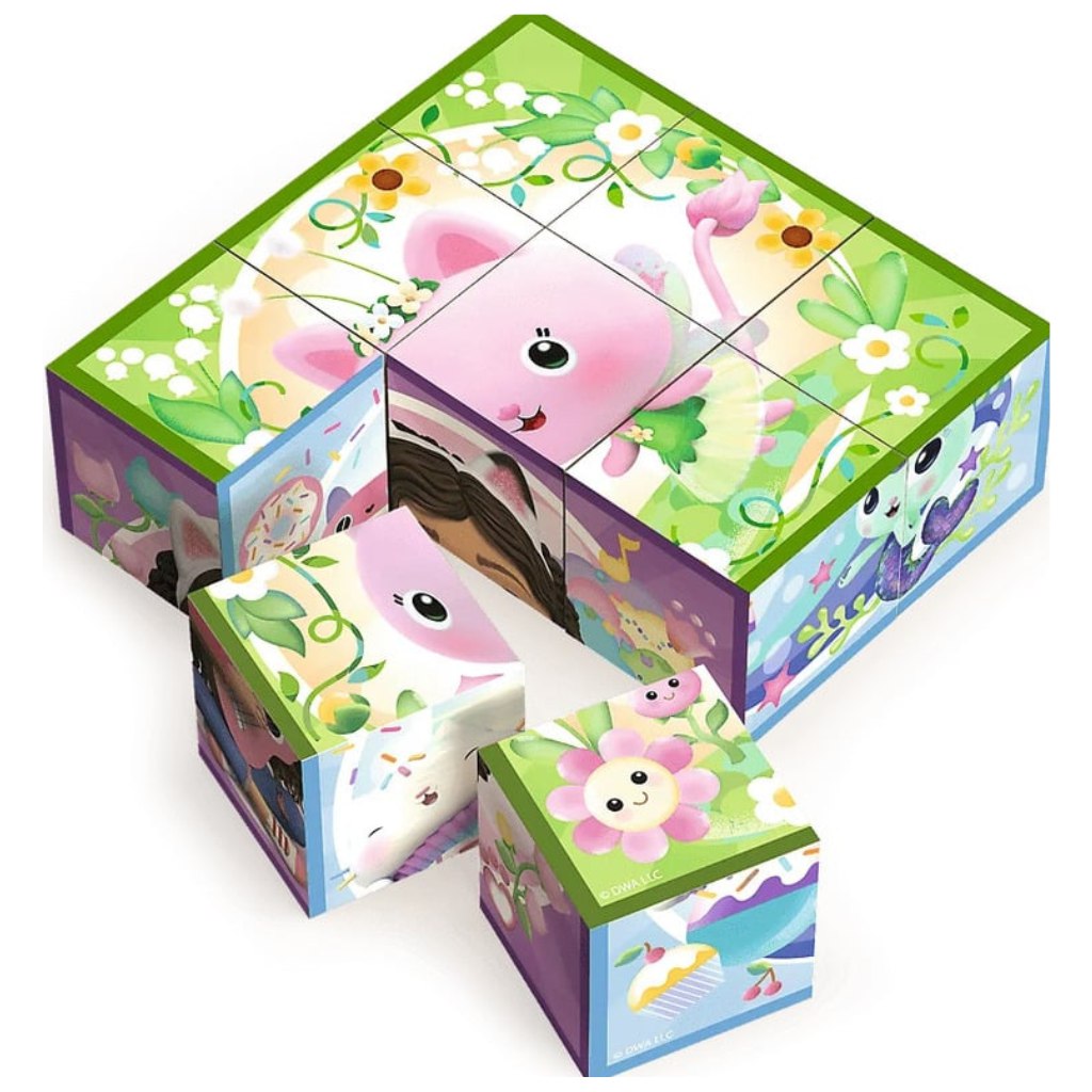 A kockák mérete ideális a kis kezek számára, a tartós faanyag pedig hosszú éveken át biztosít játékélményt. A gyönyörű, élénk grafikák a népszerű Gabby’s Dollhouse sorozatból kelnek életre, így minden kirakott kép új örömöt okoz.