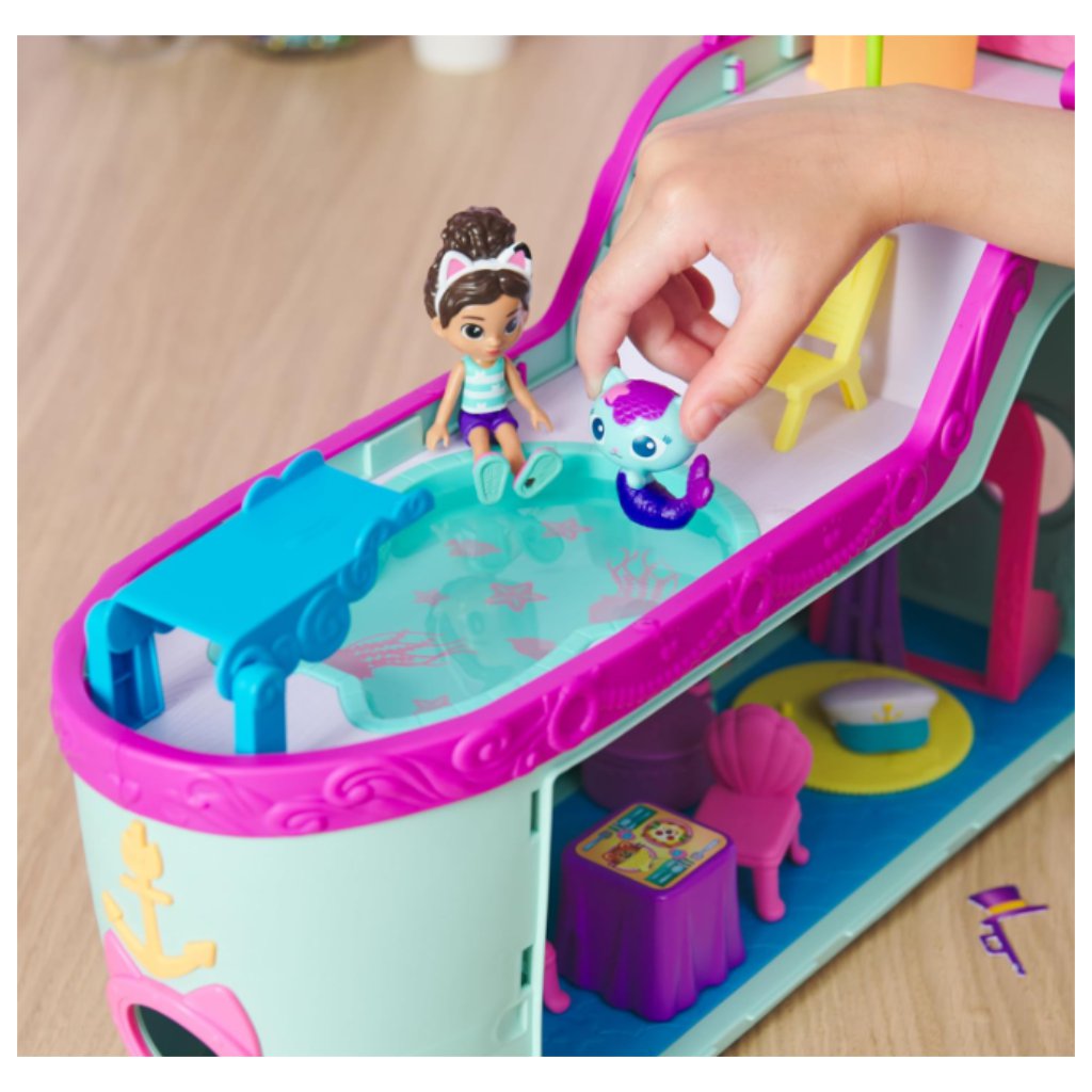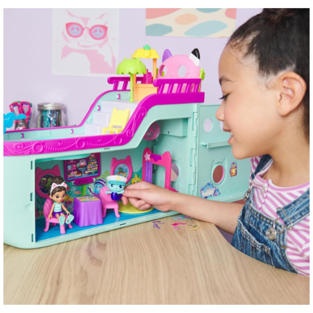 A hajó részletgazdag kialakítása és a színes dizájn elrepíti a gyerekeket egy varázslatos világba, ahol Gabi és macskabarátai különféle kalandokat élhetnek át. A hajó fedélzetén napozóterasz, csúszda, pihenőhelyek és még egy mini kávézó is található. A készletben megtalálhatóak Gabi és Pandy Paws figurái, valamint rengeteg kiegészítő, amelyek még szórakoztatóbbá teszik a játékot. A hajó oldalai kinyithatók, így könnyen hozzáférhetők a belső terek is.