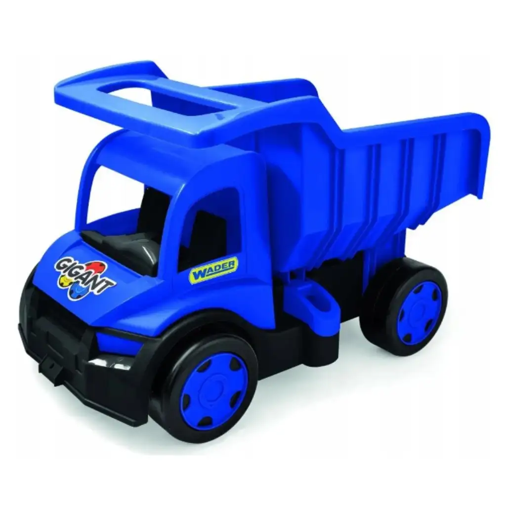 A Wader Gigant óriás dömper kék színben egy igazi klasszikus játék minden gyermek számára! Ez az 55 cm-es vagány járgány akár 150 kg-ot is elbír, így könnyedén helytáll a homokozóban, a kertben vagy akár a gyerekszobában is. Masszív, tartós kialakítása lehetővé teszi, hogy gyermeked bátran pakolja és billenthető platójával könnyedén ki is ürítheti a rakományát. Ez a kék-fekete dömper biztosan fejleszti a kreativitását, motorikus képességeit, és hosszú órákra leköti gyermeked figyelmét!