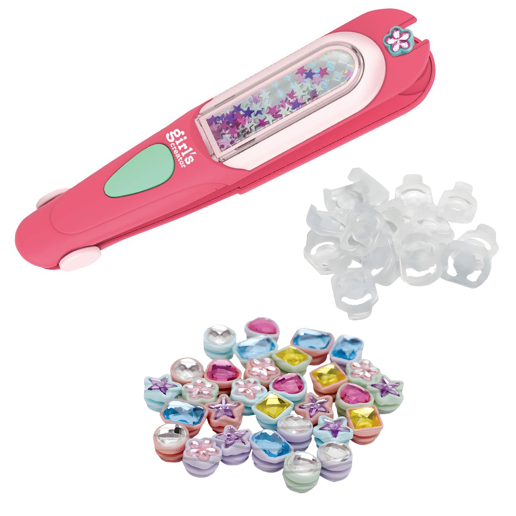 A hajdíszítő ékszer szett egy varázslatos játék, amely lehetővé teszi a gyerekek számára, hogy gyönyörű hajékszereket készítsenek és pompás frizurákat alkosson. Ez a szett egy patentelő ékszer gépet tartalmaz, amely segítségével könnyen elkészíthetők a hajékszerek, és patentelő rózsaszín ékszerekkel van felszerelve.