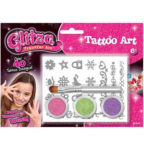 A divatos csillámtetkó szett változatos témakörökből tartalmaz motívumokat, melyek remekül mutatnak majd a bőrödön! Kis csillámos tetoválásokat készíthetsz magadnak és barátaidnak, melyek egyszerűen elkészíthetőek a Glitza készlettek. A csillámtetkók elkészítéséhez egyszerűen csak helyezd fel a matricát, majd a csillámport az ecsettel vidd fel a felszínére. Neked melyik csillámtetkó tetszik? Válaszd ki a mintát és aszíneket, majd láss neki a tetkó elkészítéséhez!