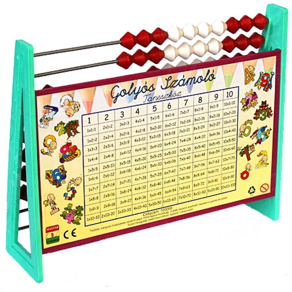 A kicsik a matematikai alapok elsajátításakor remekül használhatják ezt a golyós számolótáblát, melynek használatával a szorzást is gyerekjáték lesz megtanulni. A több sorban, fém rudakon elhelyezkedő piros és fehér golyók segítenek a számolás fizikai megjelenítésében, így hamar megértik a gyerekek a számolások összefüggéseit. A golyós számolón színes szorzótábla is segíti a tanulást!