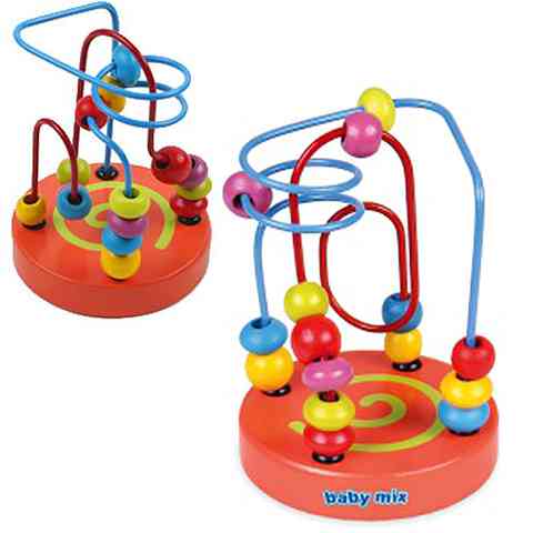 A színes játék izgalmas kialakítása és mozgatható elemei azonnal felkeltik a kicsik érdeklődését, így máris kezdetét veheti a kézügyesség- és készségfejlesztő játék. A kicsik az élénk színű fa golyókat húzhatják végig a fém rudakon, melyek kacifántos útvonalat tartogatnak. A két különböző színű golyóvezető pálya lefoglalja a gyerekeket, akik így önállóan fejlesztik kézügyességüket. A játék méretéből adódóan akár út közben is játszható.