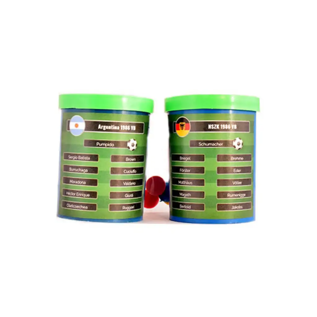 Ez a gombfoci szett visszavisz egy keveset az időben, egészen az 1986-s VB döntőre, ahol Argentína csapata méretkezett meg Németország válogatottjával, a meccse végén pedig a nagy Maradona fel tudta emelni az aranykupát. A játékot 2-4 személy játszhatja és a játék célja, hogy a gombfoci játékosokkal eljátsszátok a világbajnoki mérkőzést. A szettben helyet kapott a két focicsapat legjobb 11 játékosa, ezen kívül még 4 gombfoci labda is található benne, így már csak kapukra lesz szükséged. Visszanézheted az akkori focimeccset és visszajátszhatod a fontos helyzeteket, gólokat vagy lenyomhatsz egy igazi mérkőzést. Mindezen kívül egy ajándéknak is örülhetsz, ugyanis 22 játékos matricát is beletettünk, a Feyenoord Rotterdam és a Glasgow Rangers 2017-es csapatait.