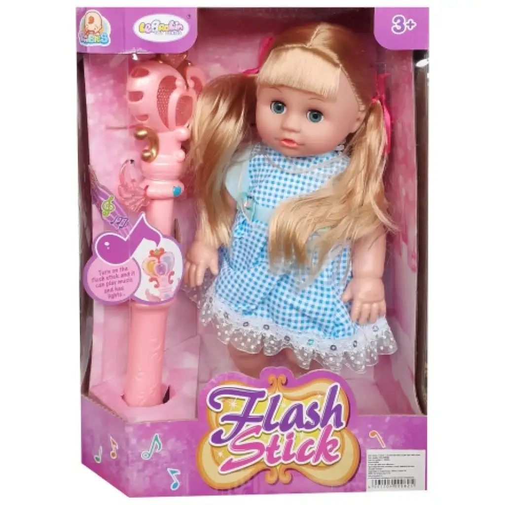 Játékbaba zenélő és világító jogarral 36cm-esJátékbaba zenélő és világító jogarral 36cm-es
