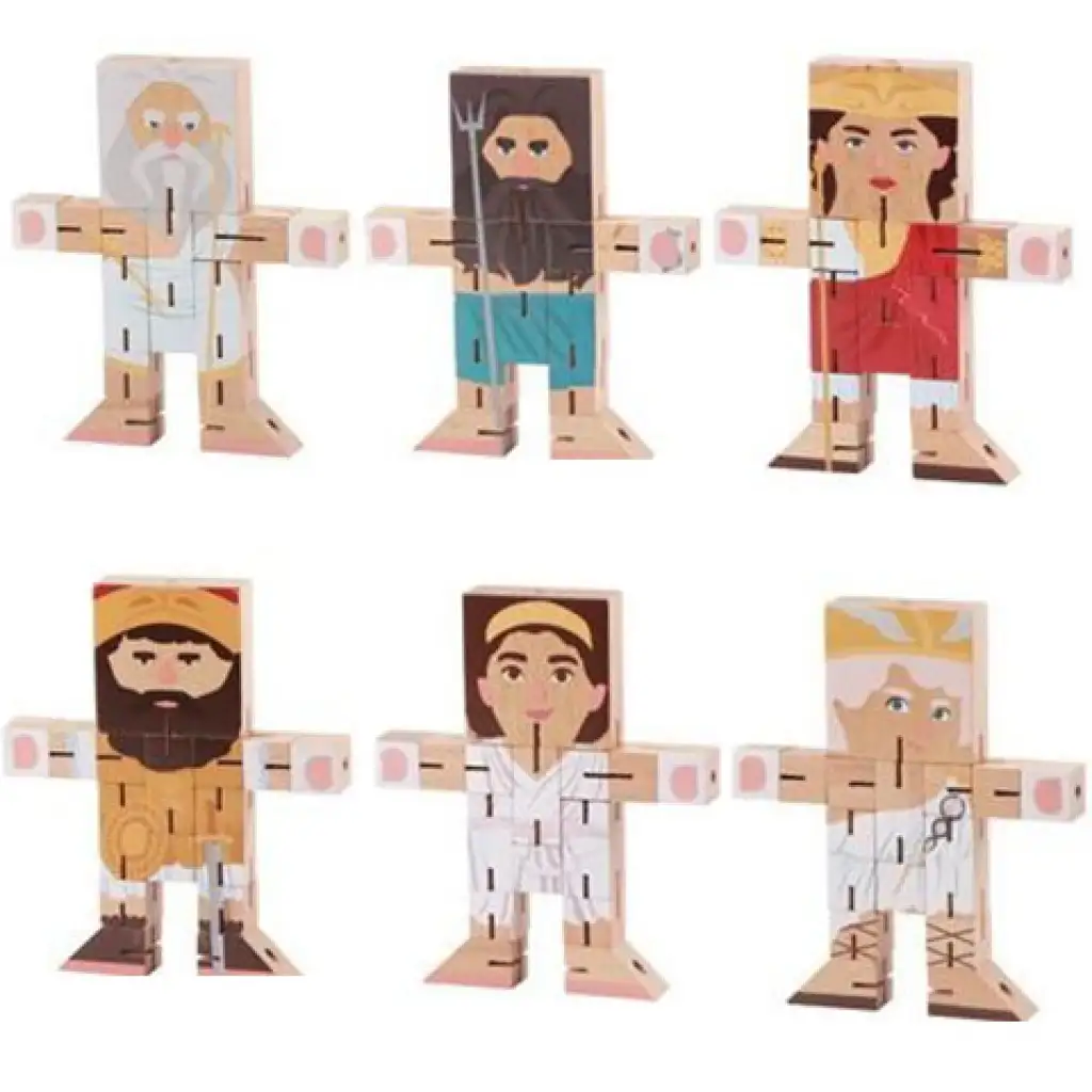 Ezek a fa logikai kirakók valóban komoly fejtörést jelenthetnek a gyerekek számára. Minden istenség egy kockába hajtogatva érkezik, és a feladat csupán annyi, hogy megfelelő sorrendben kihajtogassuk az istenek végtagjait, hogy teljes pompájukban tündökölhessenek előttünk. Az igazán egyedi logikai játék nem csak a gyerekek agyát tornáztatja meg, hanem a finom-motorikus készségeiket is fejleszti, miközben olyan neves görög istenekkel ismerkedhetnek meg, mint Zeusz, Poszeidon, Athéne, Árész, Hermész vagy Artemis.