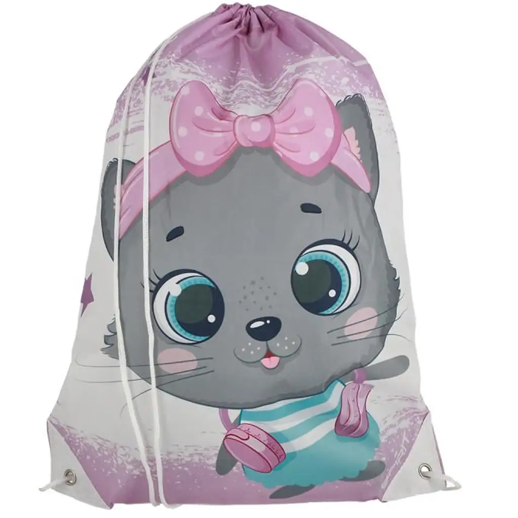 A Spirit Gray Kitty tornazsák a cicarajongó gyerekek tökéletes kiegészítője, amely nemcsak aranyos, de praktikus is a mindennapokban. A nagy szemű, rózsaszín masnis szürke cicával díszített minta kedves és barátságos hangulatot áraszt, amit a lágy pasztell árnyalatok tesznek igazán kislányos megjelenésűvé. Akár óvodába, iskolába vagy sportfoglalkozásra indul a gyerkőc, ezzel a tornazsákkal garantáltan mosollyal a vállán teszi majd!