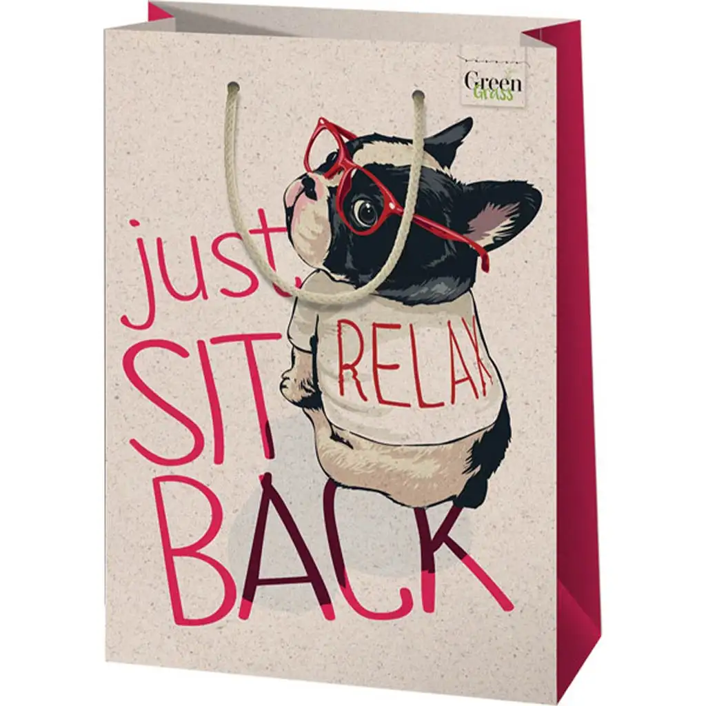 Green Grass Relax! kutyusos nagy méretű prémium ajándéktáska 26x14x33cmGreen Grass Relax! kutyusos nagy méretű prémium ajándéktáska 26x14x33cm