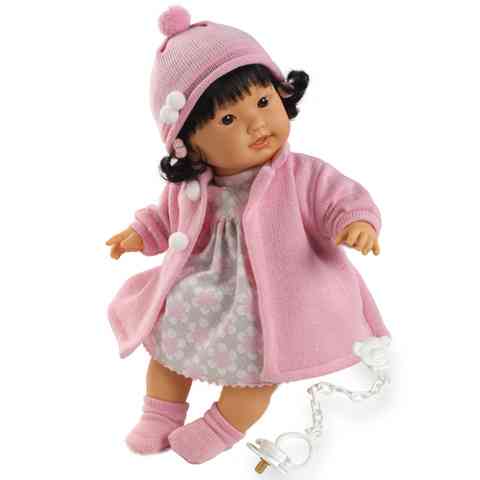 Ez a baba ázsiai vonásai miatt különleges. Rózsaszín, pom-pomos kabátja, az ugyan ilyen, hurkolt anyagból készült, pom-pomos zoknija és sapkája a kislányok kedvenc színe, igazi babarózsaszín. Halványszürke alapszínű, nagy, rózsaszín-fehér virágos ruhája, szoknyája alján lévő vékony fodor miatt igazán romantikus babának mondható. Ruhadarabonként vetkőztethető, ami nem csak játék szempontjából kívánatos, hanem a ruházat könnyű tisztíthatósága miatt is fontos.