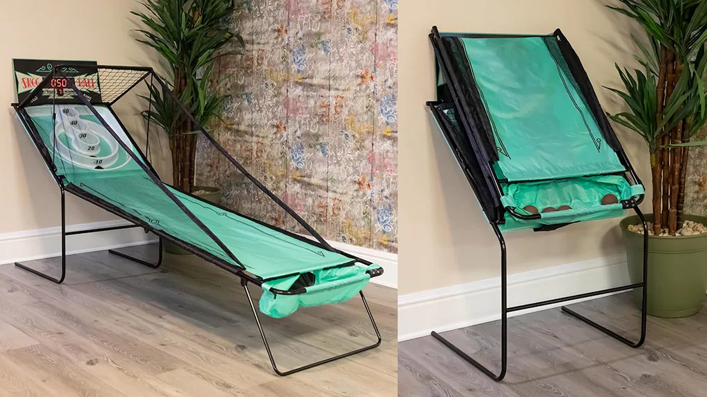 A home arcade gépek és a játékszobák növekvő népszerűségével ez a Skee-Ball Frame Game kiváló választás lehet, amely összehajtva és a falnak támasztva elfér a home arcade szekrények mellett tárolás céljából. Amikor készen állsz a játékra, egyszerűen csak bontsd ki az alagutat és készülj fel a gurításra!