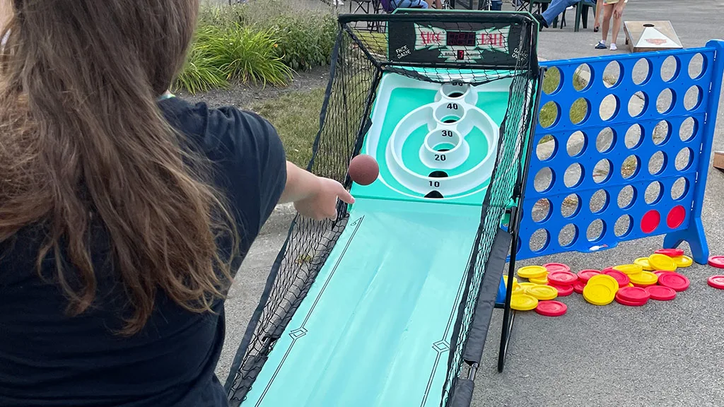 A múlt ősszel tartottuk meg éves utcabálunkat, és a két legnagyobb siker mindkettő az EastPoint Sports játékai voltak: a Giant Connect 4 és a Skee-Ball Frame Game! A környékbeli gyerekek, akik közül sokan még sosem játszottak Skee-Ball-t, azonnal rákaptak, és sorban álltak, hogy kipróbálhassák. Olyan népszerű attrakció volt, hogy a szomszédos szülők megkértek, hogy vigyem ki újra a Halloween partinkra (és így is tettem!).