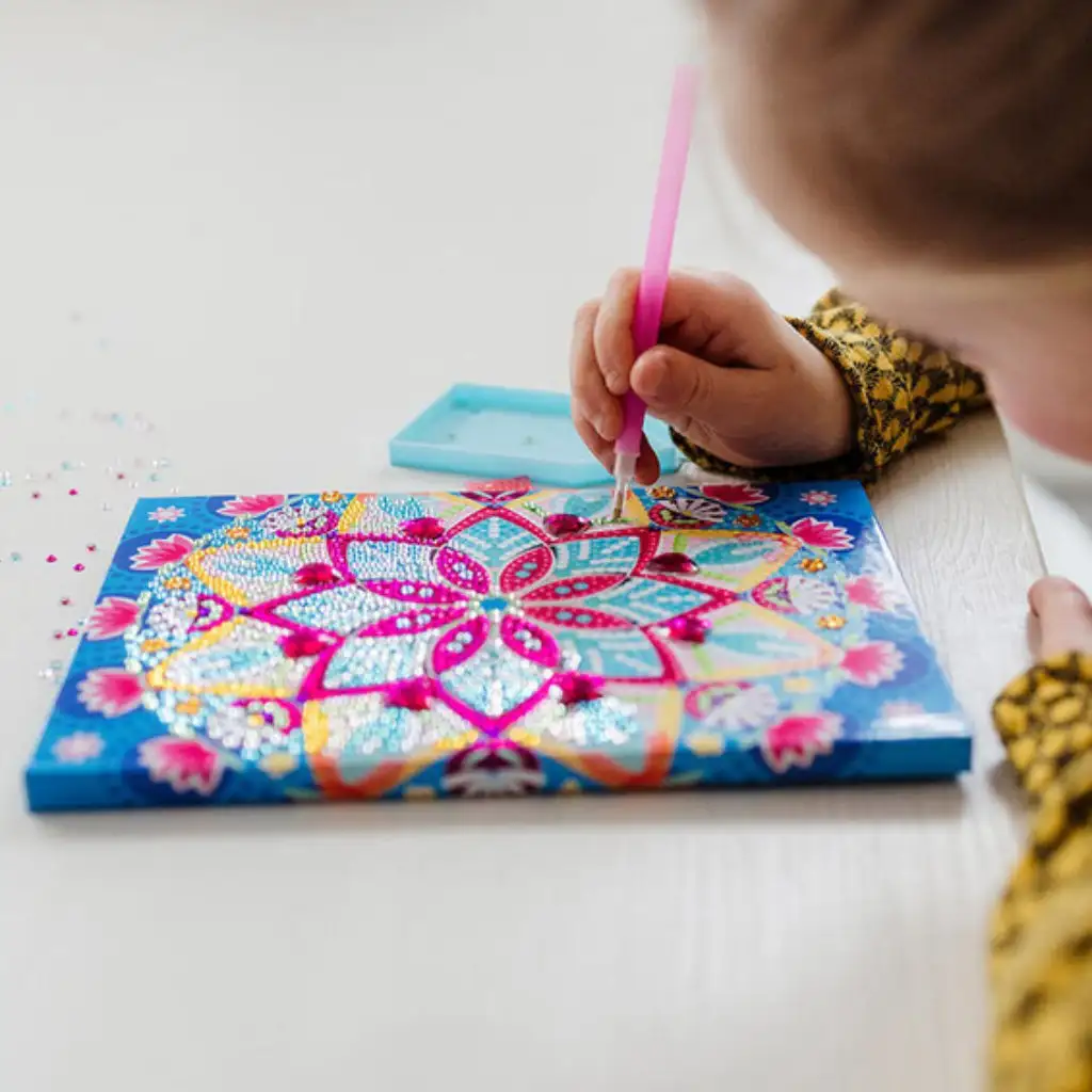 A gyémántfestés nemcsak szórakoztató elfoglaltság, hanem egy meditációs élmény is, amely nyugtat és segít a fókuszálásban. A kész lótusz mandala tökéletesen illik a szoba díszítéséhez, és büszkeséggel tölti majd el a kis művészeket, hogy saját kezűleg készítették.