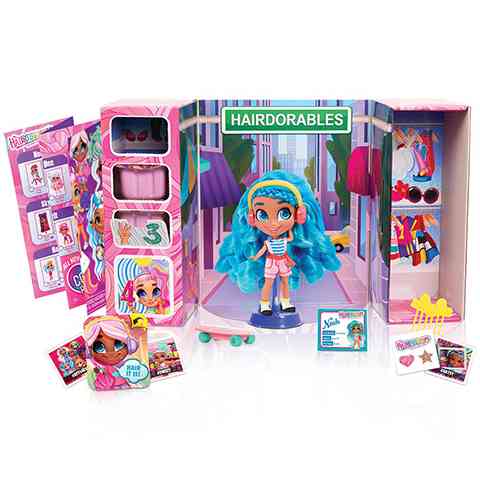 Bővítsd ki gyermeked játékgyűjteményét az imádnivaló, hosszú hajú Hairdorables babákkal, akik már alig várják a felhőtlen játékot! Vajon a doboz melyik lányt rejti és milyen kiegészítőket találhat benne gyermeked? A csomagolás egyszerűen kinyitható, csak le kell húzni a középső részen található nyitófület és már ki is tárul a kis divat-kuckó, ahol a baba és a kiegészítők rejtőznek. A csomagban a hajas babával együtt összesen 11db kiegészítő és divatkellék található, többek közt cipők, matricák, masnik, vagy akár táska és gördeszka is. A doboz szétnyitva úgy néz ki, mint egy valódi szoba szekrényekkel. A baba gyönyörű, hosszú haja kedv szerint fésülhető, fonható vagy akár copfba is fogható. Összesen 26 különböző baba gyűjthető össze a kollekcióból.