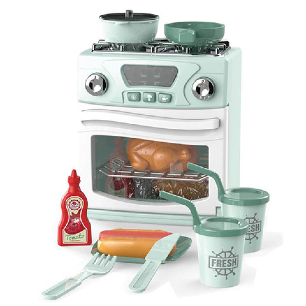 Rendezz be a gyerekek játszó szobájában egy igazi konyhát, hogy finom ebédet készíthessenek a barátaik vagy a babáik részére. Persze egy kiadós ebédhez, kelleni fog egy gáztűzhely is, amin a kicsik megfőzhetik vagy megsüthetik a dolgokat. Ez a nagyszerű gáztűzhely pont ideális erre a feladatra. A két hatalmas dombbal eljátszhatják, hogy alágyújtanak az edényeknek, amit természetesen a játék részét képezik, sőt a csomagban egy mutatós grillcsirke is megtalálható. A játék az elemeknek köszönhetően fénnyel és hanggal is izgalmasabbá teszik a játékot.