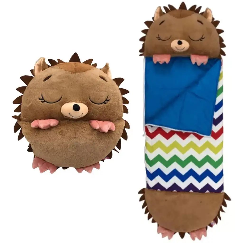 A Happy Nappers Hence sün nagyméretű 2 az 1-ben hálózsák ideális választás kisgyermekeknek és óvodásoknak egyaránt. A plüss sün könnyedén összehajtható egy kispárnává, amit strapabíró patentok tartanak egyben, így praktikusan is tárolható. Emellett a hálózsák párna alakja fogantyúval rendelkezik, így könnyedén vihető bárhová. Akár kerti sátorozásra, akár pizsamapartira, a gyermeked mindig jól fogja érezni magát.