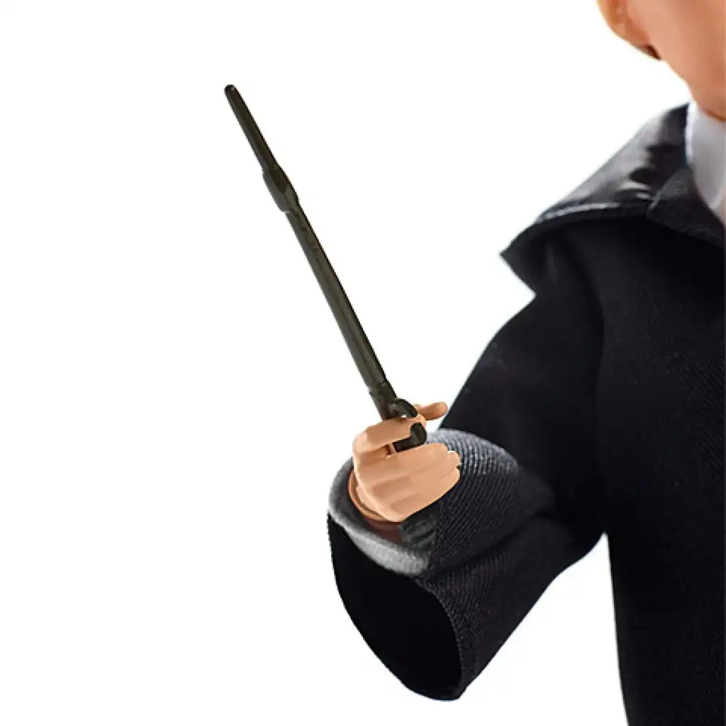 A Weasley-család legifjabb fiú tagja Ron, a vörös és kissé ügyetlen varázslótanonc, aki már az első Roxfortba tartó útján barátságot köt Harry-vel és Hermionéval. A három jóbarát innentől kezdve minden évben izgalmas kalandokba keveredik, melyet nyomon követhetsz akár a Harry Potter és a Titkok Kamrája filmben is. A Ron baba élethű kialakítású, a Griffendél színeivel dekorált egyenruhájában és talárral érkezik hozzád. Használd a varázspálcát is, amit könnyedén a Ron figura kezébe illeszthetsz.