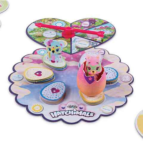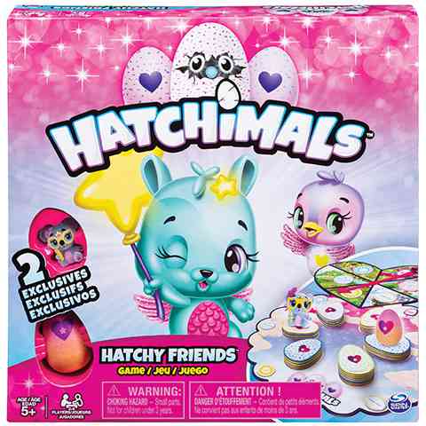 A Hatchimals Hatchy Friends társasjátékkal legalább kettő és maximum négy játékos játszhat és a különleges játéktere, az imádnivaló Hatchimals figurák és az izgalmas játékszabály nagyszerű játékidőt garantál, ami általában 20perc körüli. A játék szabályai igazán egyszerűek, így akár öt éves kortól is használható a társasjáték. A szettben található pörgettyű használatával a játékosok az óra járásával megegyező irányban egymás után pörgethetik ki a következő lépést. Az akciókártyákat a játéktér közepén, a gyűjtőre helyezve kell tartani és a cél az, hogy minél többet szerezz meg belőle. A csomagban két különleges Hatchimals figurával is találkozhatsz, amelyek a gyűjteményedet gazdagíthatják.
