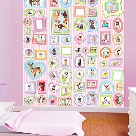 A legbájosabb kis házikedvencek láthatóak a fali tapétán, akik mind színes képkeretben kaptak helyet. A fali tapéta a lányok számára lehet kedves, hiszen azon a legcukibb, legédesebb kutyák, macskák és még egy őzike is látható. A fali tapéta felhelyezése egyszerű, rendkívül mutatós dekorációs elem.