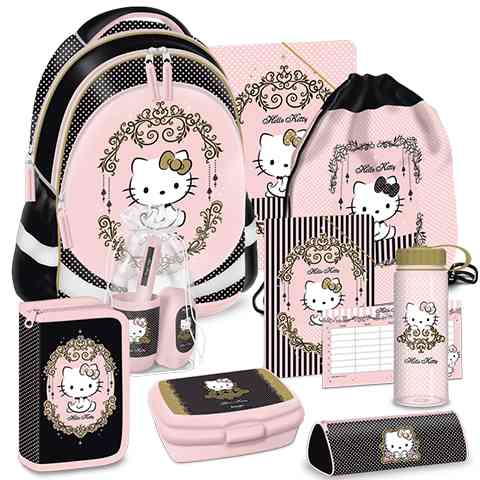 Készülj fel az iskolakezdésre Hello Kitty iskolatáska szetteddel! A tíz részes szettben egy anatómiai gerincbarát hátkiképzésű iskolatáska, egy tornazsák egy írószerekkel töltött tolltartó és sok más hasznos iskolaszer található. A világos rózsaszín árnyalatok és a Hello Kitty grafika mindegyik iskolaszeren megtalálható így tökéletesen passzolnak egymáshoz. Nyűgözd le barátaid és osztálytársaid, légy te a legdivatosabb tanuló az iskolában!