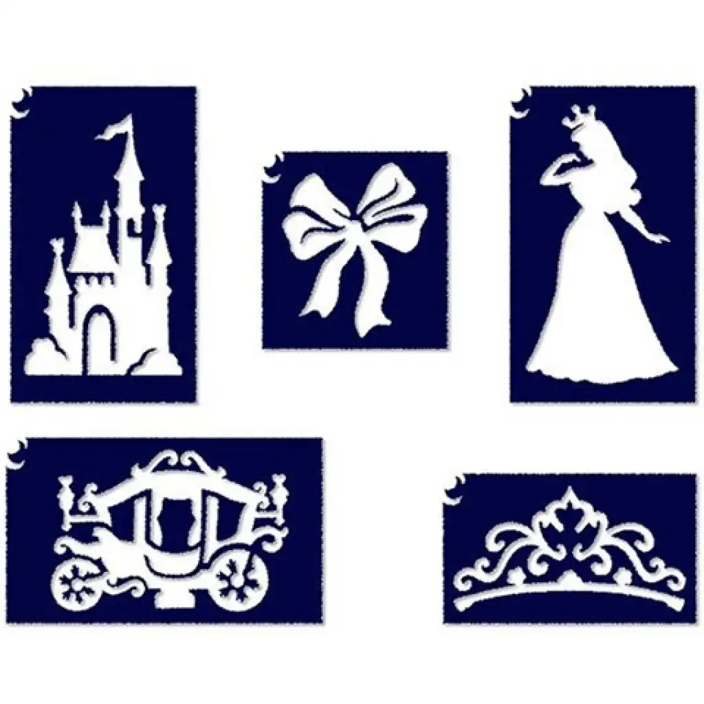 Nincs az a kislány aki ne rajongana a mesebeli hercegnőkért és a hercegnőkkel kapcsolatos dolgokért. Ebben a sablon készletben minden álom valóra válhat, hiszen könnyedén készíthető vele hercegnős, kastélyos vagy tiarás csillámtetoválás. A TyToo sablon készleteinek köszönhetően a gyerekek a legváltozatosabb minták alapján készíthetnek maguknak csillámtetoválást, hiszen a sablont feltéve, csak át kell kenni azt ragasztóval, és megszórni a megfelelő színű csillámporral, és a sablon mintája máris a bőrt díszíti.
