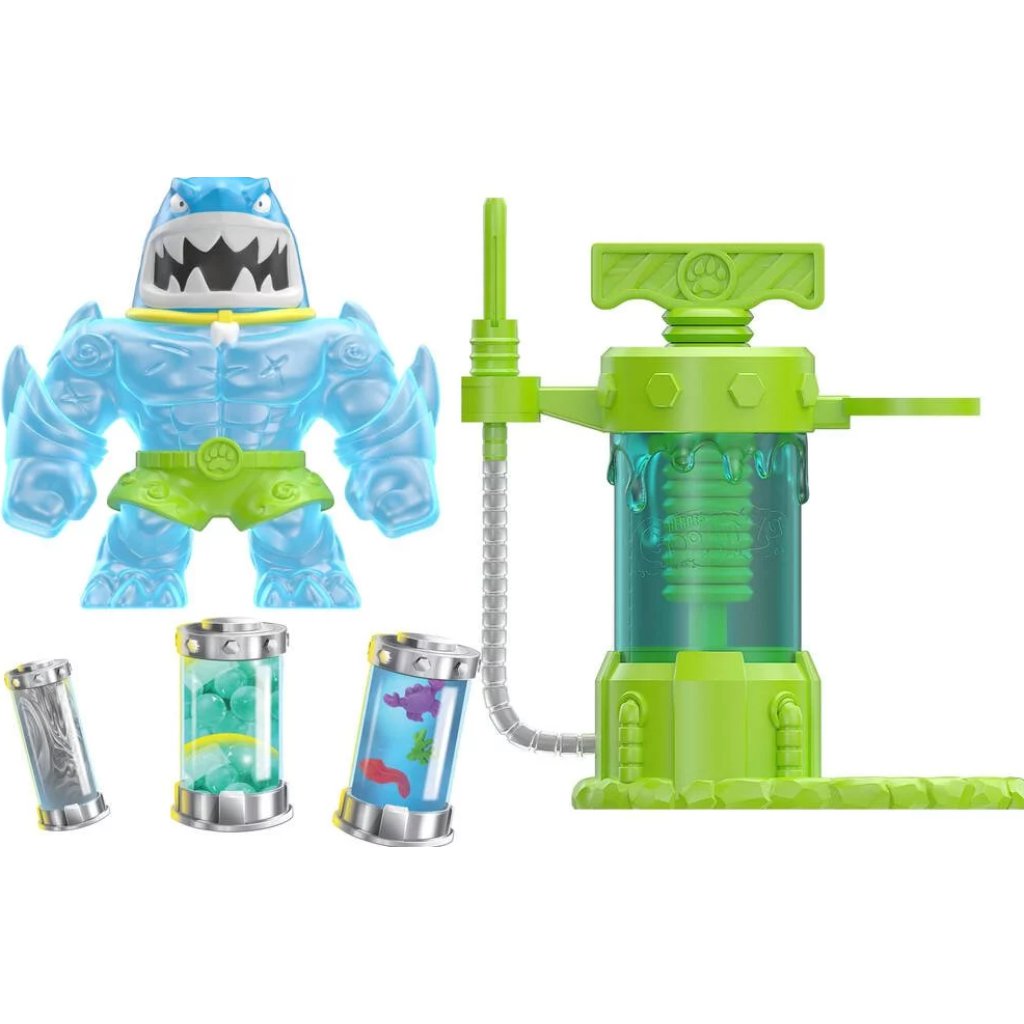 A Heroes of Goo Jit Zu csináld magad nyújtható figura - Thrash készlet lehetőséget ad arra, hogy a gyerekek maguk alkossák meg saját nyújtható Goo Jit Zu hősüket. Thrash, a cápahős, most teljesen testreszabható: a szettben található speciális géltöltetekkel töltheted meg a figurát, és a keverékekkel különböző egyedi kombinációkat hozhatsz létre. A készlet három egyedi gél töltetet tartalmaz, amelyeket a mellékelt keverő és feltöltő eszközzel adhatsz hozzá Thrash testéhez.