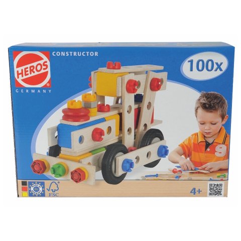 A Heros Constructo nagyban hasonlít a fém építőjátékokhoz, ám itt az építőelemek fából és műanyagból készülnek, melyek jóval ideálisabbak a kisebb gyermekek számára. A könnyen használható készlet számos jármű megalkotására ad lehetőséget, melyeknek építési útmutatóját a 100db-os szett tartalmazza. A gyerekek akár saját fantáziájukat is használhatják az alkotásra, hogy különleges járműveket és építményeket alkossanak. Vonat, motor, roller, teherkocsi és még számtalan ötletes dolog készíthető a Heros Constructo készletével.
