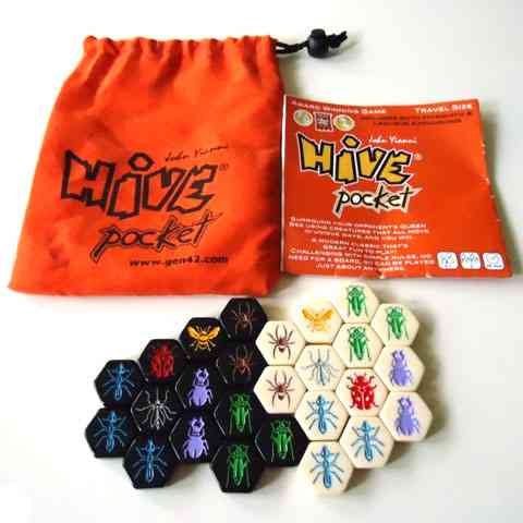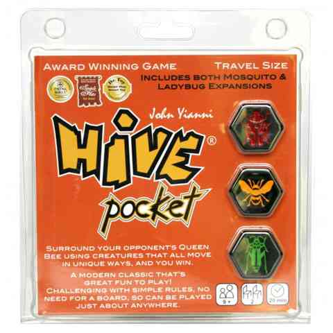 A Hive stratégiai játék számtalan elismerést és díjat nyert meg, teljesen megérdemelten, és most itt a lehetőség, hogy ezt a népszerű játékot egy utazás során se kelljen nélkülöznöd. A játékosoknak jó kombinációs készségre, logikára és gyorsaságra lesz szükséged. A játék nem tartalmaz játéktáblát, hiszen a pályát maguk a játék elemei alkotják. A különlegesen illusztrált stratégiai játék hatszögű elemeket tartalmaz, melyen bogarak szerepelnek. Célod, hogy a különféle bogarakkal bekerítsd az ellenfél Méhkirálynőjét. A rovarok minden tagja más lépésekre képes, ezzel különleges stratégiát alkalmazhatsz minden egyes bogaraddal. A Pocket változat lapkái kisebbek, így kényelmesen egyetlen szütyőben elférnek, azonban ez a változat tartalmazza a katicát és a szúnyogot is.
