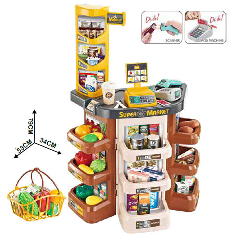 Egy olyan szupermarket boltot varázsolhatunk a gyerekek szobájából, ahol mindent lehet kapni, és ahol a gyerekek pénztáros és a vevőként is játszhatnak. Ebben a negyvenhét darabos készletben a gyerekek mindent megtalálnak, ami ahhoz kell, hogy boltosat játszanak. A készlet része egy bevásárlókosár, és egy pult, ahová a legváltozatosabb áruk kerülhetnek a polcokra. A gyerekek gyakorolhatják a vásárló és a pénztáros szerepkörét is, ráadásul olyan életszerű dolgok teszik izgalmassá a játékot, mind a működő vonalkódolvasó, a mérleg vagy a bankkártya leolvasó. A játékban lévő elektronika fénnyel és hangokkal fokozza a játékélményt.