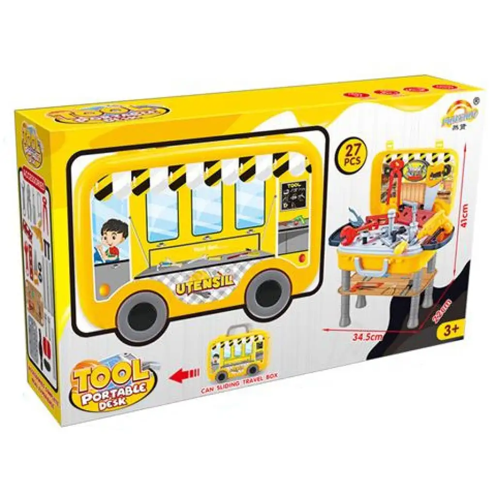 Kisfiad szeretné kivenni a részét a különböző javítási munkákból? Ha igen, ezt a szettet neki találták ki, hiszen rengeteg szerszám található meg benne, melyekkel otthon bármit megjavíthatnak majd, a játéknak pedig csak képzelőereje szabhat határt. A szerszámok között fúrót, fogókat, villáskulcsot és csavarokat is találhat majd gyermeked, ráadásul a tárolót asztallá lehet alakítani, de összecsukva egy buszt jelenít meg, amit kényelmesen lehet hordozni, így bárhol játszani tud majd vele gyermeked.