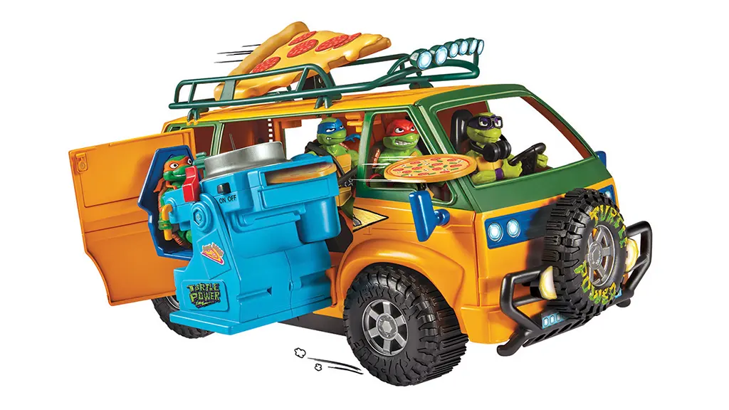 Ez a furgon elöl és hátul is nyílik, négy Teknőcnek és Splinternek (külön megvásárolható) van benne hely. A gyerekek aktiválhatják a kicsúszó pizzaindítót, ami akár nyolc mini pizzát is kilőhet.