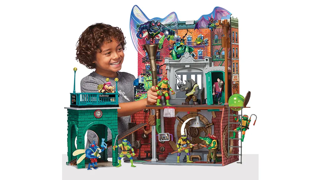 A gyerekek kedvenc Teknőc testvérek kvartettjének otthona 24 hüvelyk magas, és több szinttel rendelkezik a játékszett. Több mint 20 akciódús funkcióval a gyerekek elképzelhetik, hogy készülődnek a csatára vagy éppen pizzát esznek, miközben játszanak.