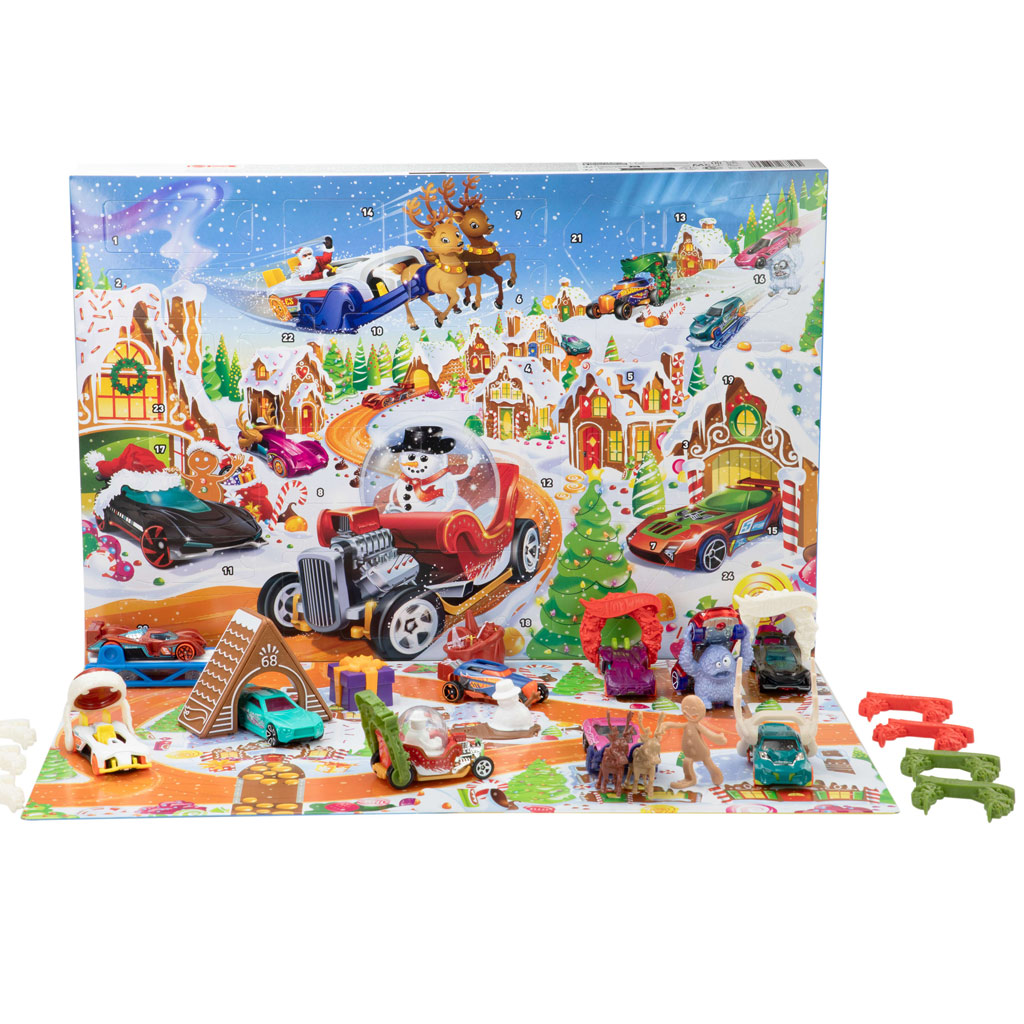 A Hot Wheels Adventi naptár minden napra tartogat egy izgalmas meglepetést, hogy a karácsonyig hátralévő idő még különlegesebb legyen. A 24 kis ablak mögött összesen 34 darab ajándék rejtőzik, köztük 10 darab 1/64 méretarányú kisautó – amelyek közül az egyik kizárólag ebben a naptárban található meg – és számos ünnepi kiegészítő.