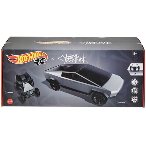A Hot Wheels távirányítós Cybertruck egyesíti a Tesla élvonalbeli innovációját és a Hot Wheels hihetetlen presztízsét, így a rádióvezérlésű járművek között a legvadabb a partnerség. Ez a karcsú, futurisztikus jármű tartalmazza a szabadon guruló Cyberquadot, amely a nyitott teherautó platójára helyezhető és onnan eltávolítható. A Cybertruck működő fényszórókkal és hátsó lámpákkal rendelkezik a szupermenő effektek érdekében, és akár 20 kilométer/órás sebességre is képes, ellenfeleit porban hagyva.