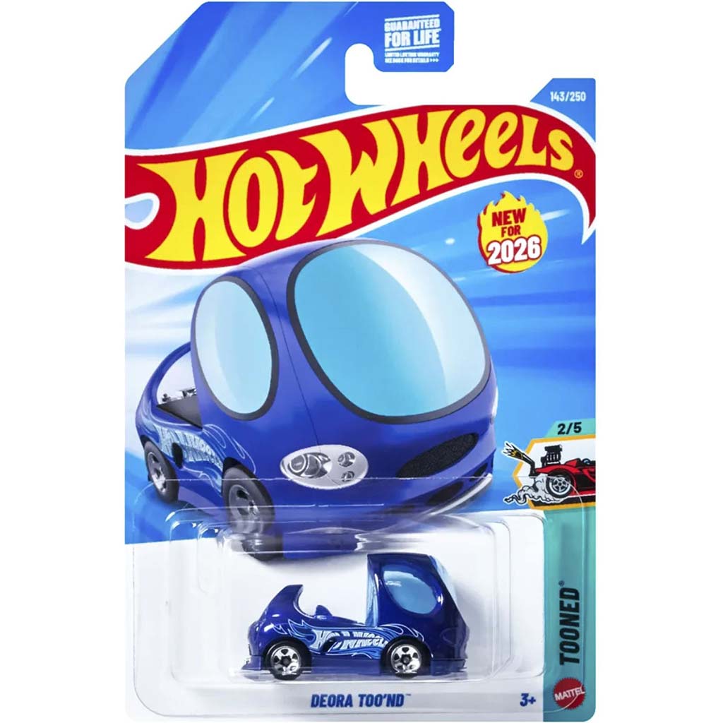 A Hot Wheels Deora Too’ND kisautó egy igazán vidám és különleges darab, amely garantáltan mosolyt csal gyermeked arcára. Ez az 1/64 méretarányú modell a klasszikus Deora formát hozza el játékos, „rajzfilmszerű” stílusban, amit a lekerekített formák és a hatalmas, buborékszerű ablakok tesznek igazán egyedivé. Az élénk kék szín és a látványos grafika még izgalmasabbá teszi a megjelenését.