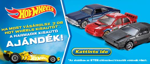 Ha most vásárolsz 2db Hot Wheels 5785-ös kódszámú kisautót, akkor a harmadikat ajándékba adjuk. Az akció 2014.03.19-től 2014.04.15-ig, vagy a készlet erejéig tart. Az akció csak az 5785-ös kódszámú Hot Wheels kisautókra érvényes. A vásárlás során elég 2db kisautót a kosárba raknod, a harmadikat autómatikusan megkapod. Az ajándék kisautó típusa véletlenszerű!