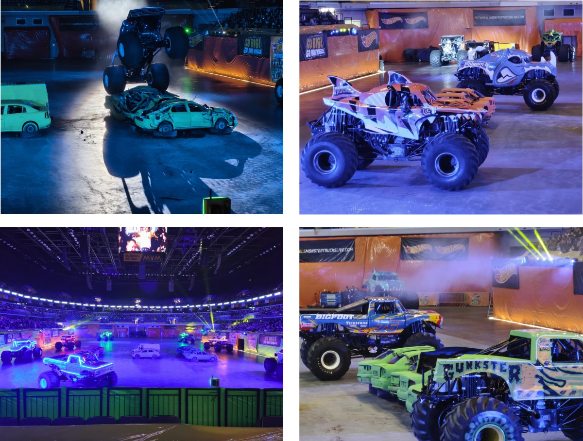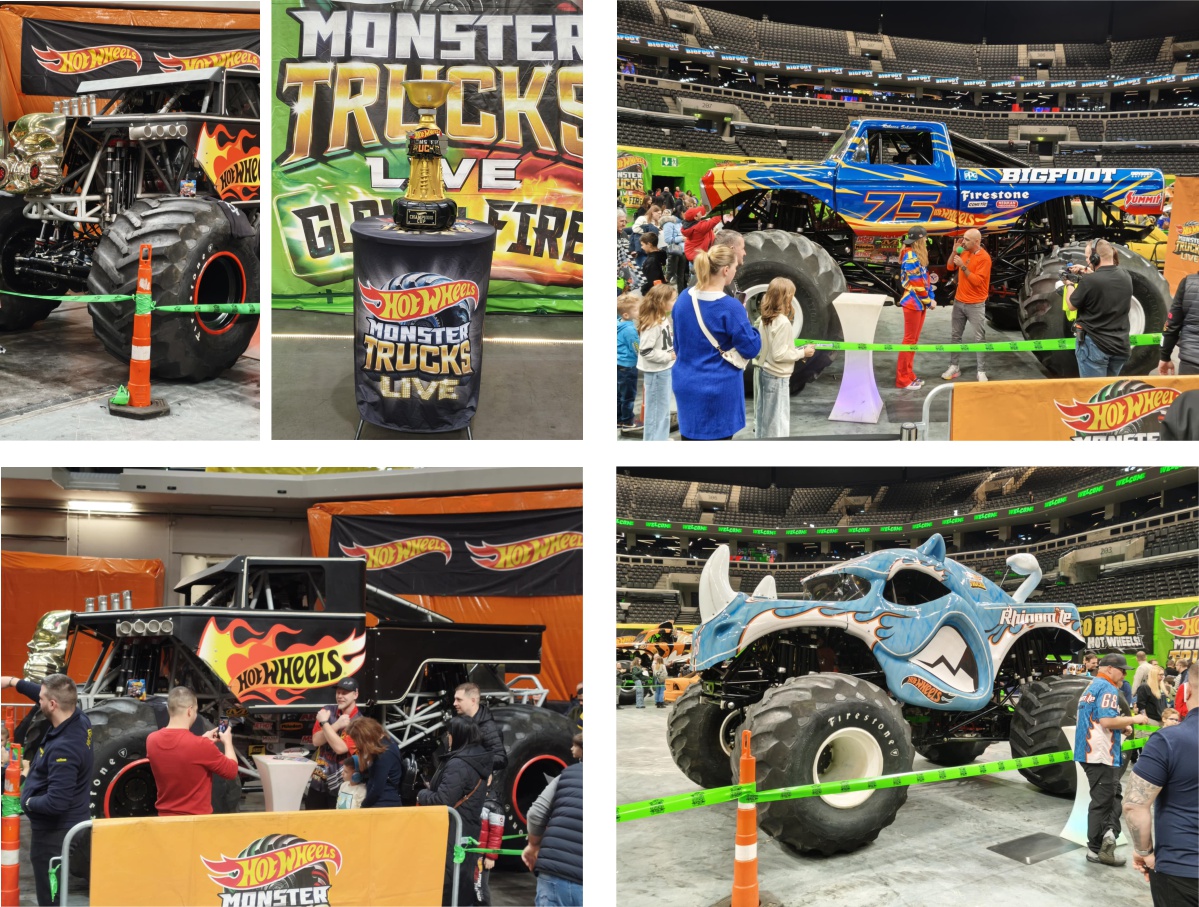 A műsor sok tekintetben emlékeztetett a tengerentúlon legendás Monster Jam versenyeire, ám míg azt Európában csak képernyőn keresztül lehet követni, a Hot Wheels produkció valódi, testközeli betekintést adott a szörnyautós arénaversenyek világába. Ezúttal hét autó sorakozott fel a rajtrácson: Bone Shaker, Bigfoot, Gunkster, SkeleSaurus, Mega Wrex, Tigershark és a most bemutatkozó Rhinomite, amelyek mind saját karakterrel és stílussal hódították meg a közönséget. A Hot Wheels autókat a gyerekek már jól ismerték a játékok világából, hiszen az igazi gépek a kisautók mintájára készültek.