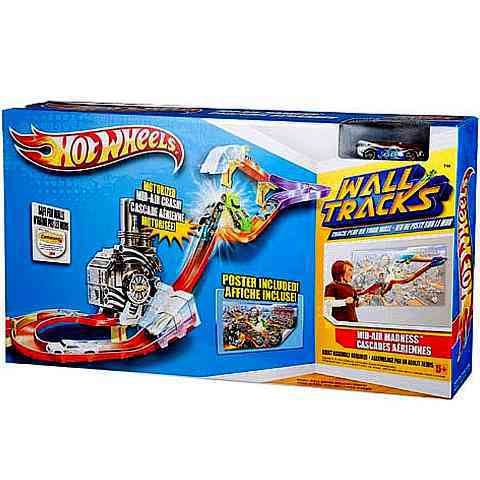 Száguldj a falon! Ez a különleges Hot Wheels pálya nem a földön építhető össze, hanem a szobád falán építheted fel! A különleges ütköztető pálya egy motorizált meghajtóval van felszerelve, melynek segítségével Hot Wheels kisautódat a magasba repítheted, majd ott a visszafordító után hatalmasat ugrathatsz. A készlet önállóan is kiváló játék, azonban a Hot Wheels függő pálya szettekkel tovább is bővítheted.